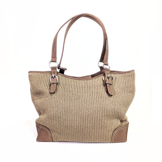 Pre-owned The Sak Crochet Knit Woven Shoulder Bag – Taupe with Brown Trim