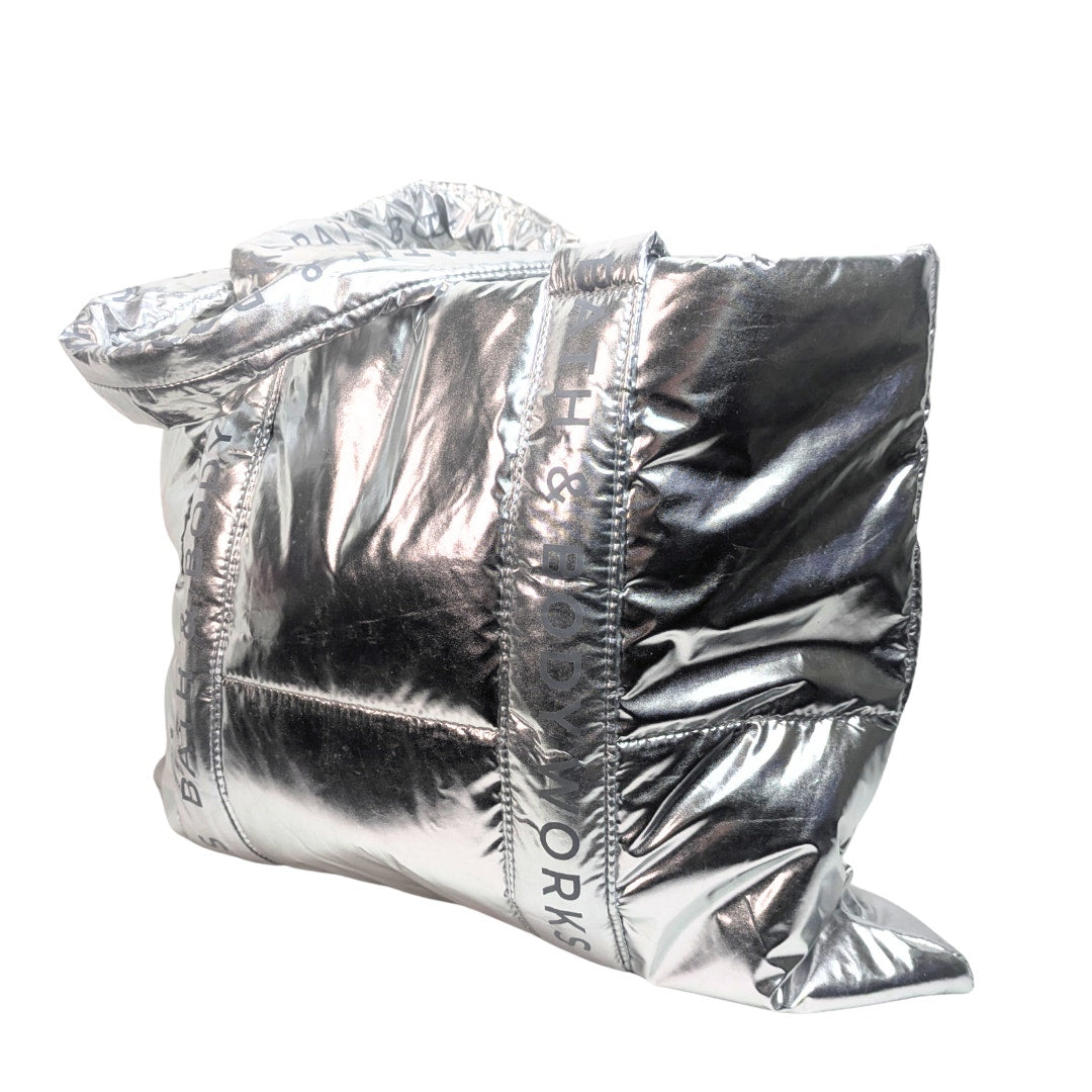 NWT Bath & Body Works Silver Puffer Tote Bag